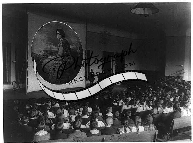 An Assembly in the auditorium for a lecture with slides on art,Education,1899?