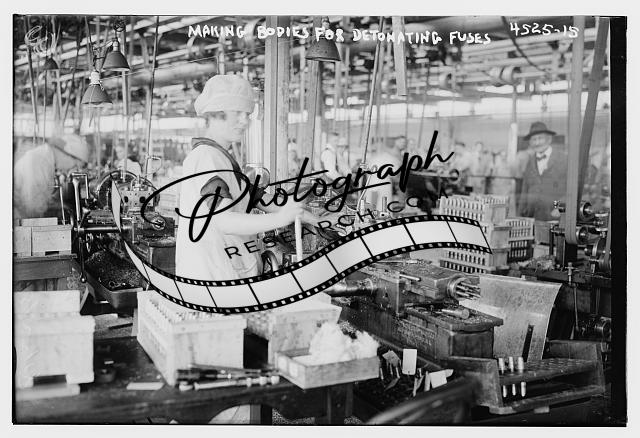Making bodies for detonating fuses,woman working,machinery,Bain News Service