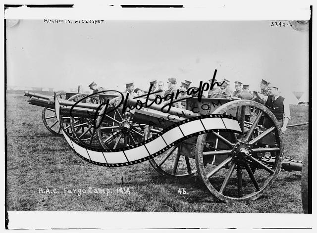 Recruits,Aldershot,H.A.C. Fargo Camp,1914,Salisbury Plain,Military,Artillery