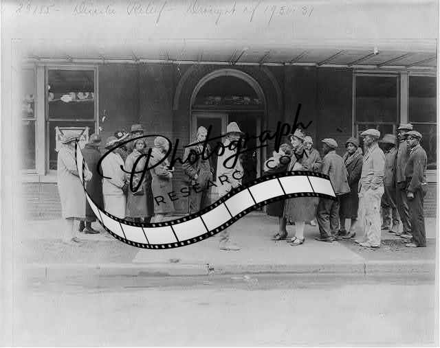Red Cross Relief,Drought 1930,African Americans on sidewalk,Disaster