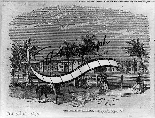 The Military Academy,Charleston,South Carolina,SC,man on horseback,1857