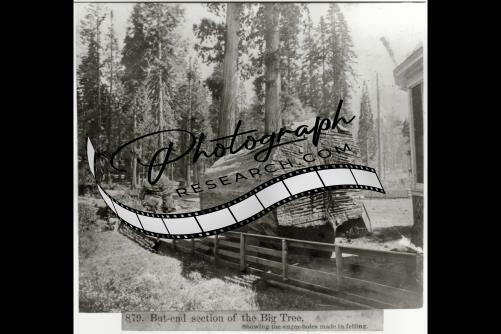 Calaveras Big Tree,showing the auger-holes made in felling,1866,CA,California