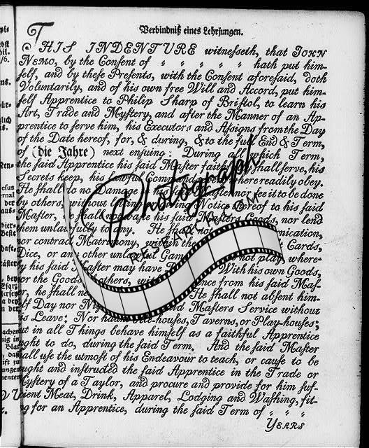 Verbindnis eines Lehrjungen,indentured servitude,1776