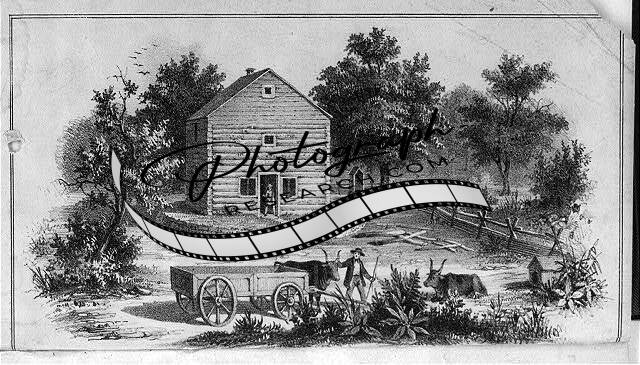 Pennsylvania farm,PA,Man with 2 oxen and wagon,house