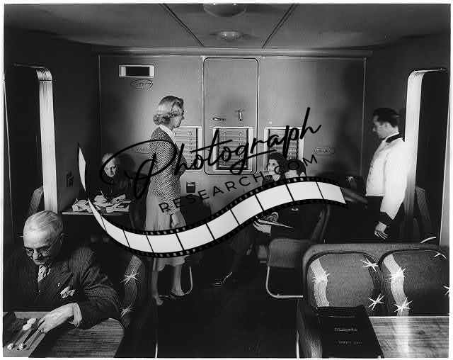 Passengers,steward in Pan American Airways trans-ocean clipper,1940-1950,plane