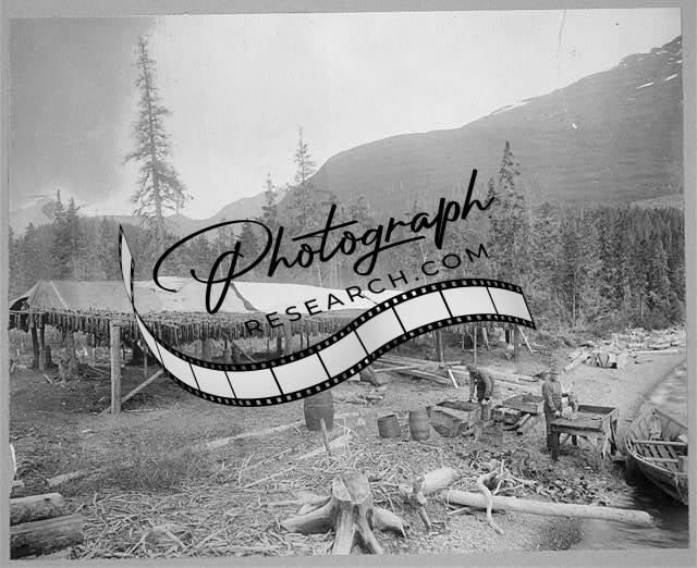 Drying salmon,Fishermen,Shorelines,Alaska,AK,1900-1923,United States