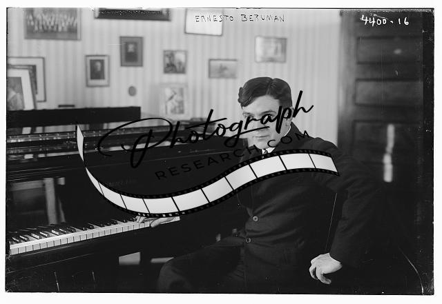 De Luca,standing by piano,pictures in frames,Bain News Service,smiling