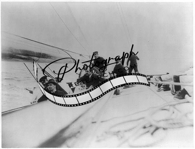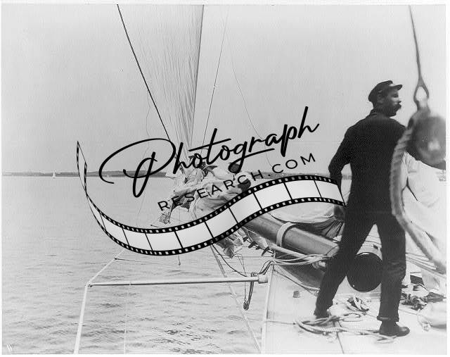 RELIANCE,sailing yacht,furling the jib,c1903
