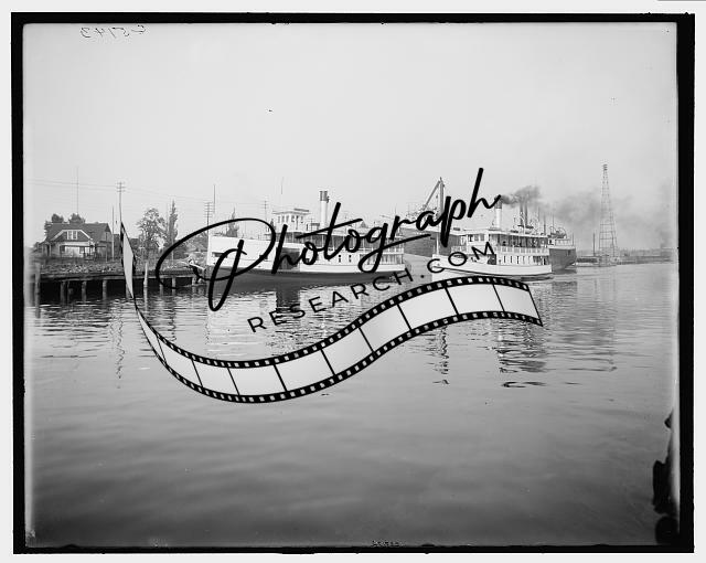 Along Black River,James Beard,steamers,boats,ships,Port Huron,Michigan,MI,1900