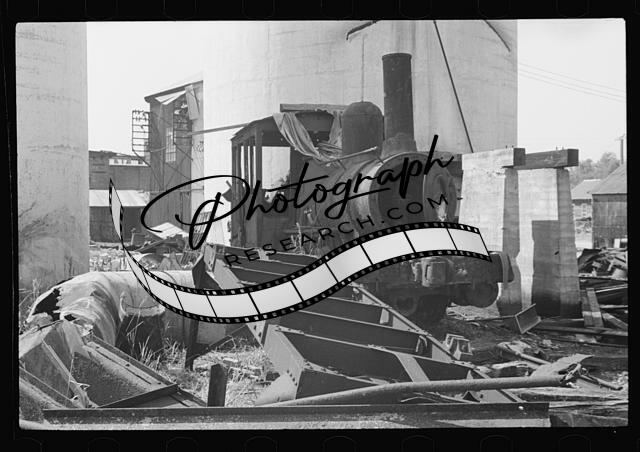 Title: Plaquemines Parish, Louisiana. Remains of old Gulf States paper mill, Three passenger trains daily used to stop here. Now one train a month
