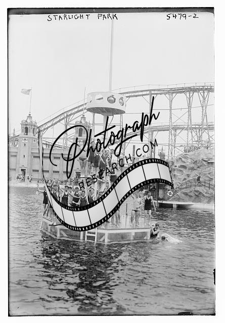 Starlight Park,amusement park,men,floating structure,boats,tracks,rides,New York