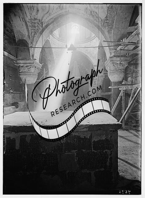 Title: Repair work in Church of [the Holy] Sepulchre. Chapel taken from stairway leading down.