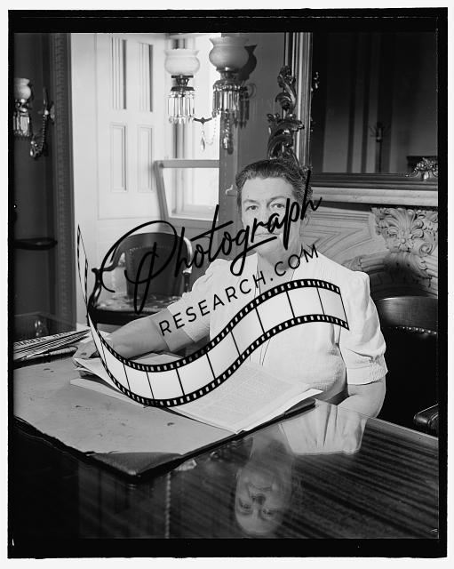 Title: Reporters question Rep. Mary Norton. Washington, D.C., July 22. Reporters besiege Rep. Mary T. Norton, Democrat of New Jersey, following her appearance today before the House Rules Committee in executive session. The purpose of the hearing was determine whether the highly controversial amendments offered by Rep. Barden, Democrat of North Carolina, should get right of way on the House floor. Rep. Norton is also the author of certain amendments to the wage-hour law which are not as controversial as those[...]