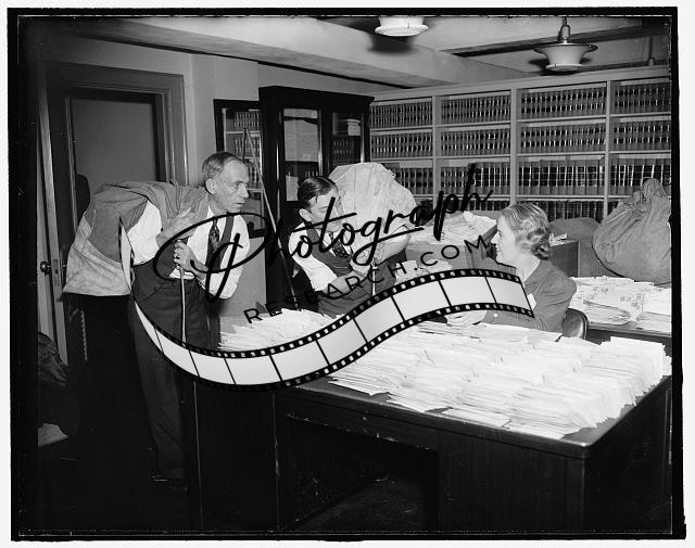 Representative Albert Thomas,reading letters,stenographer,Washington DC,1938