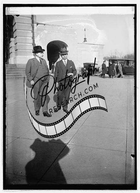 Round the World Fliers pose beside their busts,1924,National Photo Company