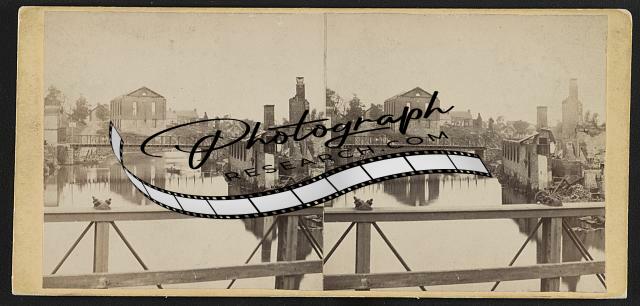 Summary: Stereograph showing an aerial view of Chambersburg and the surrounding area after it was destroyed by Confederate cavalry troops lead by General John McCausland.