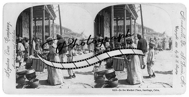 Photo of Stereograph,In the Market Place,Santiago,Cuba,c1898,Women,Children