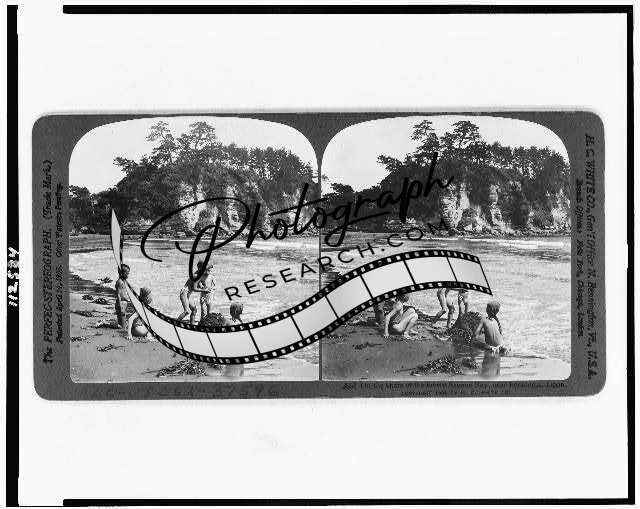 Photo of Stereograph,Diving for Shellfish,Enoshima,Japan,1900-1910,Coastline