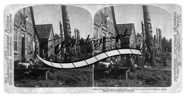Reproduction,Indian Village,Klinkwan,Totem Poles,Hydahs,Haida,Alaska,AK,c1902