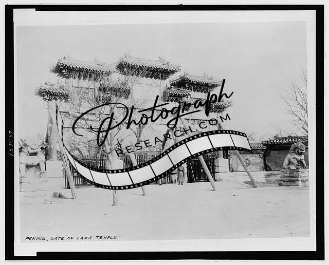 Peking,gate of Lama temple,2 Chinese men,p'ai-lou,c1900,Beijing,China,Arches