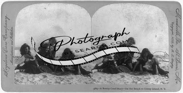 Photo of Stereograph,A Pretty Good Story,Beach,Coney Island,New York,NY,c1899