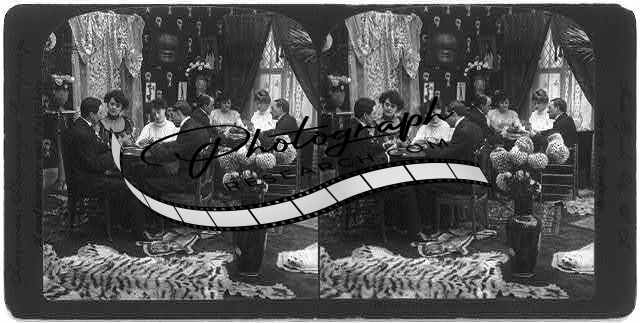 Photo of Stereograph,Playing Cards,Parlor Table,c1906,Couples Playing Cards
