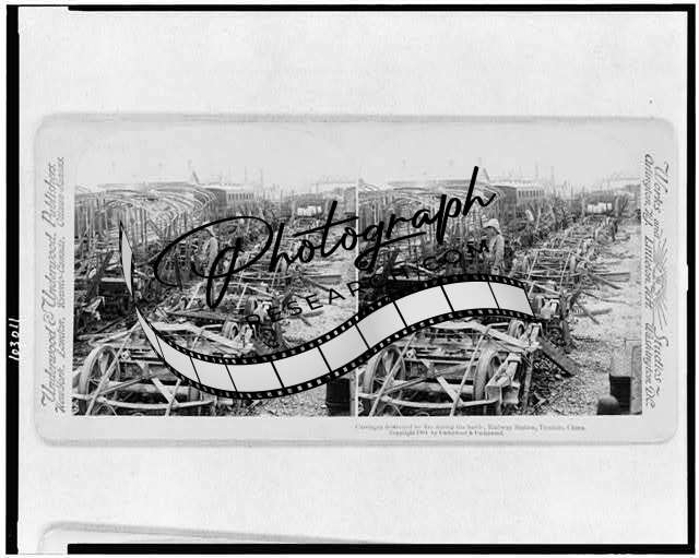 Photo of Stereograph,Carriages destroyed by Fire,Tientsin,China,c1901,Railroad