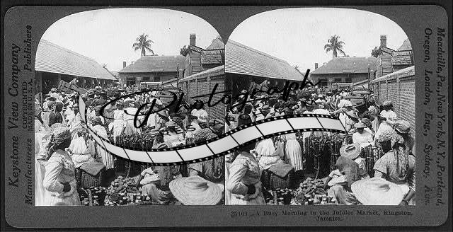 Photo of Stereograph,Busy Morning,Jubilee Market,Kingston,Jamaica,c1923