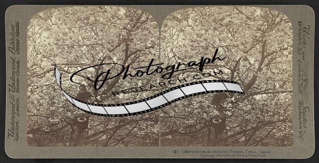 Photo of Stereograph,Cherry Blossoms,Ishikawa Temple,Tokyo,Japan,Cherry Trees