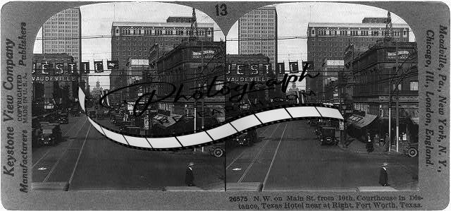 Reproduction,Main Street,Courthouse,Texas Hotel,Fort Worth,Texas,TX,c1926