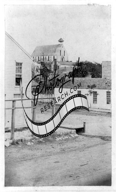 Street corner,church,hill,streets,home,buildings,Austin,Texas,TX,HB Hillyer,1860