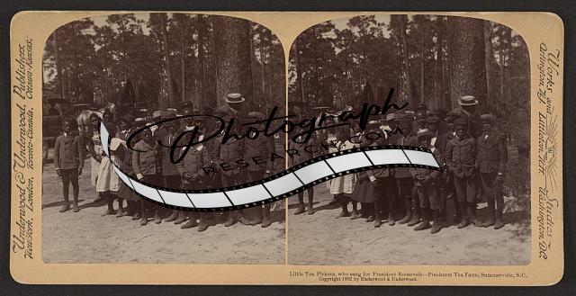 Title: Little Negro tea pickers singing pickaninny songs for President Roosevelt, Pinehurst Tea Farm, Summerville, S.C.