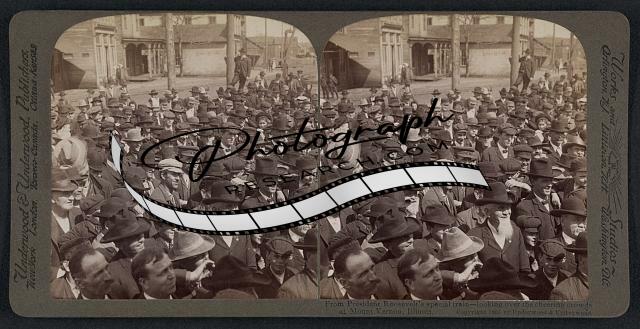 Photo of Stereograph,President Theodore Roosevelt,Ten Minute Speech,Train,c1905