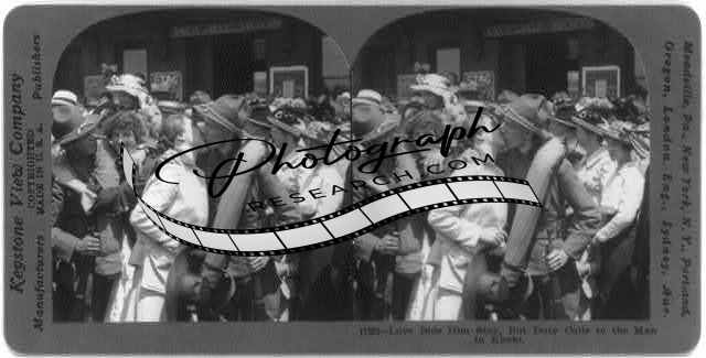 Photo of Stereograph,Love Bids him Stay,Duty Calls,Soldiers,Kissing,c1916,WWI