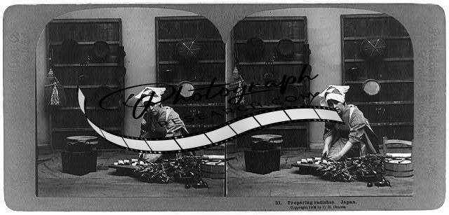 Preparing radishes,Japan,c1902,woman kneeling & cutting radishes,food