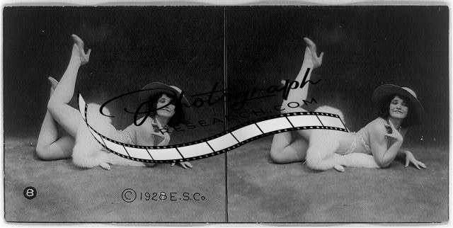 She's my baby,Scantily Clad young woman wearing fur stole,lying on her stomach