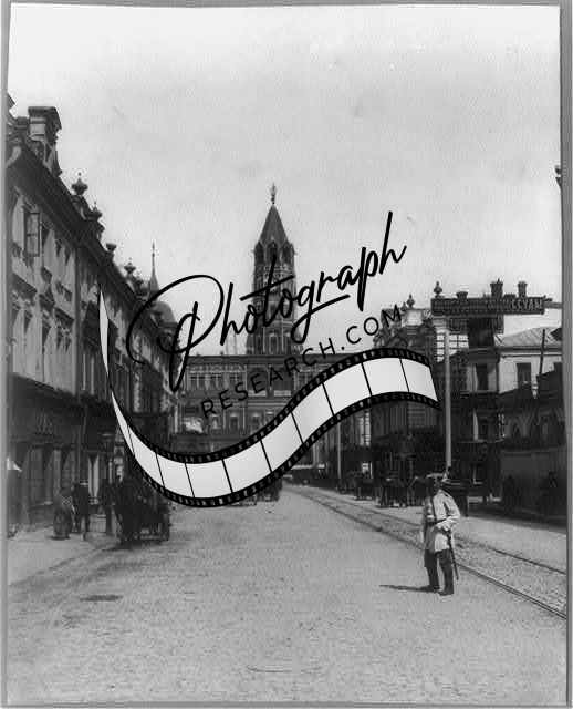 View of Suchareff Tower (water reserv.),Moscow,Russia,c1900,pedestrians