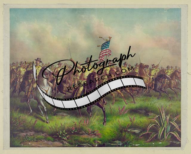 Rough-Riders,Colonel Theodore Roosevelt,U.S.V. Commander,horseback,American flag