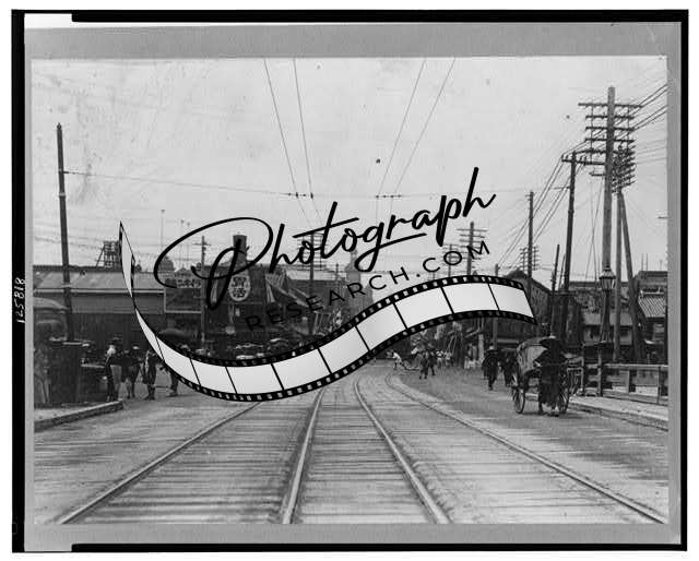 Street Scene,Tokyo,Japan,c1905,Street Railroad,Rickshaw,Pedestrians,RR Tracks
