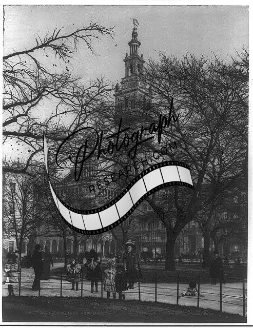 New York City,Madison Square,NYC,NY,c1900,trees,people