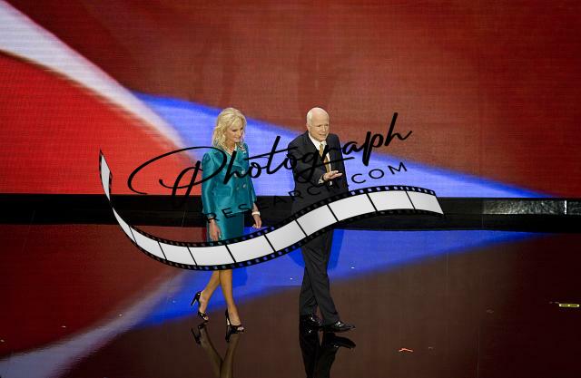 Title: Republican National Convention, September 1-4, 2008. Presidential candidate John McCain and his wife Cindy McCain greet the crowd at the convention at the Xcel Center, St. Paul, Minnesota