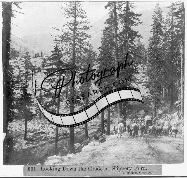 Looking down grade,Slippery Ford,El Dorado County,Placerville Tahoe Route,1866