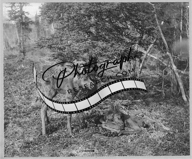 Two baby moose,Forest,Wildlife,Alaska,AK,United States,Animals,1900-1927
