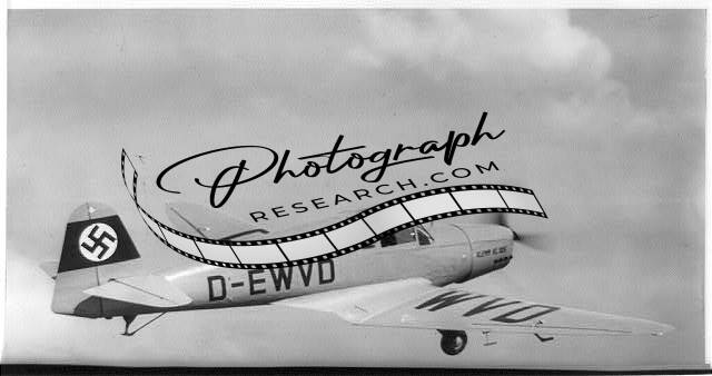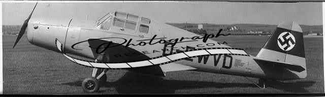 View of Klemm KL 105 airplane, Germany, 1938. Left side, on ground, Nazi