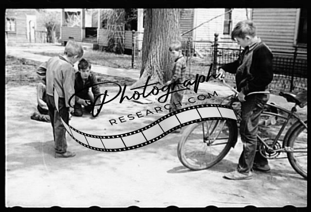 Boys in marble game,Woodbine,Iowa,IA,Children,May 1940,John Vachon,FSA