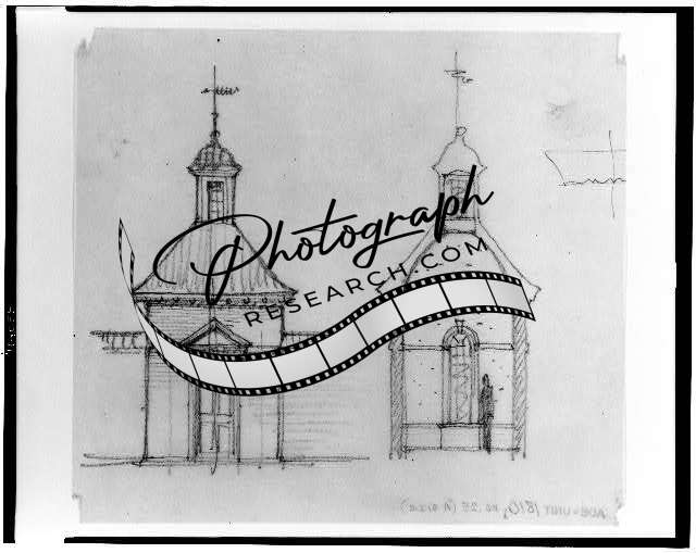 Restoration of a tavern ("Gadsby's Tavern"), Alexandria, Virginia, and the rebuilding of an official residence ("Governor's Palace"), Williamsburg, Virginia. Elevation and section of cupola or pavilion
