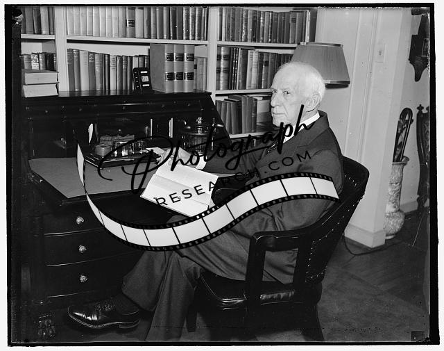 Title: Justice Van Devanter retires. Washington, D.C., May 19th. Justice Willis Van Devanter, after 26 years of service with the Supreme Court sent his resignation to the President to become effective June 2nd, seldom photographed the judge let news photographer snap him while cleaning up his desk