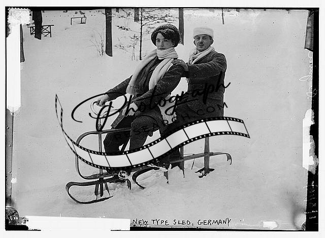 New type sled,Germany,man,woman,snow,Bain News Service,handlebars