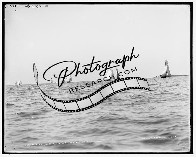 Fleet running,finish,yachts,regattas,sailing,races,boats,Put-in-Bay,Ohio,OH,1904