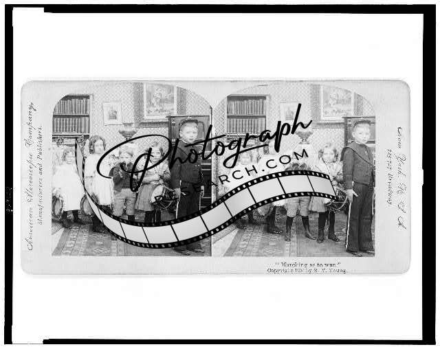 Photo of Stereograph,Marching as to War,Children,Musical Instruments,c1900